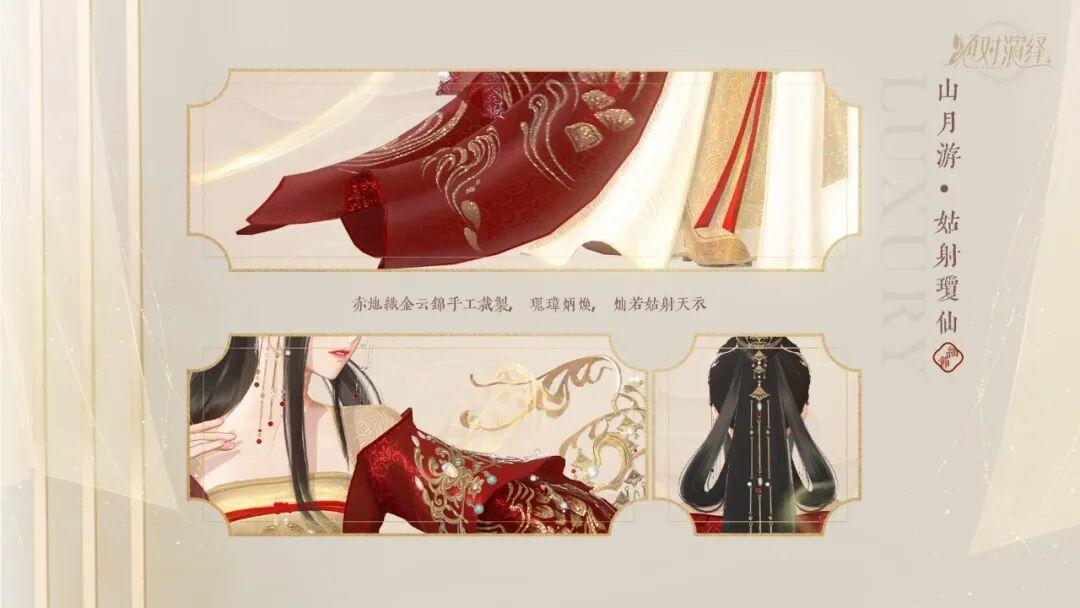 【姑射琼仙】华贵大气,如同灿阳披身。选用赤地织金云锦手工裁制,瑰玮炳焕,若姑射天衣。