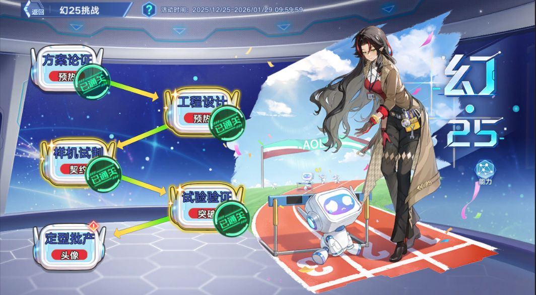 2.每个试炼首次通关时会自动获得一份奖励;挑战3样机试制、挑战4试验验证和挑战5定型批产中,可以依次获得幻·25的契约、突破资格及特色头像;