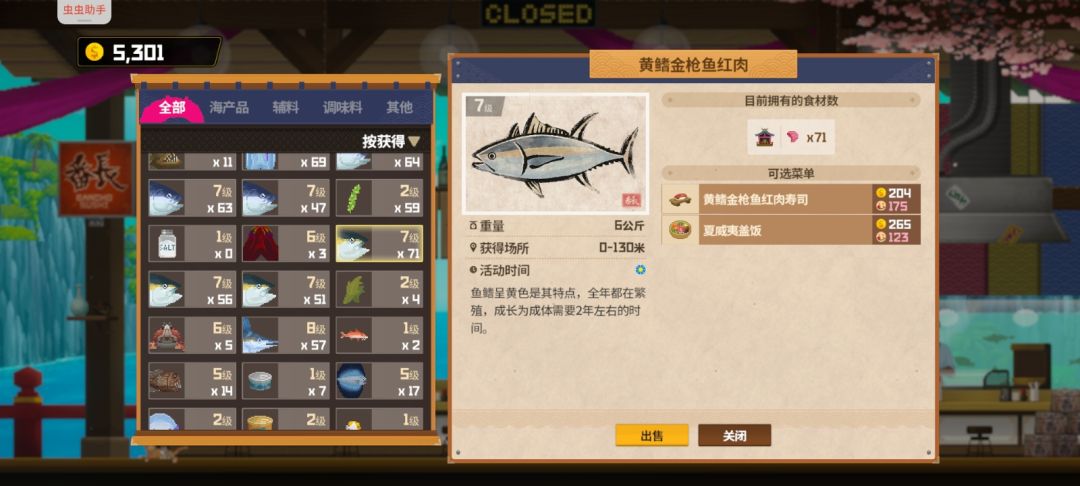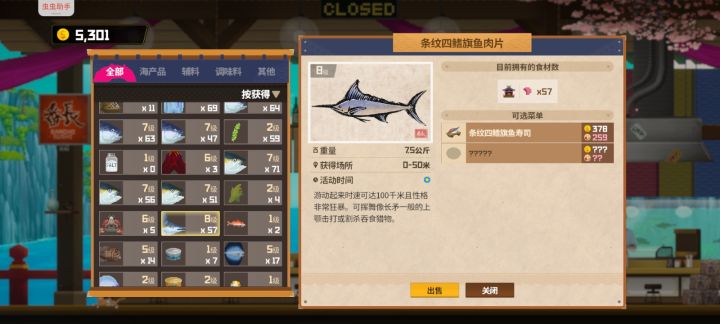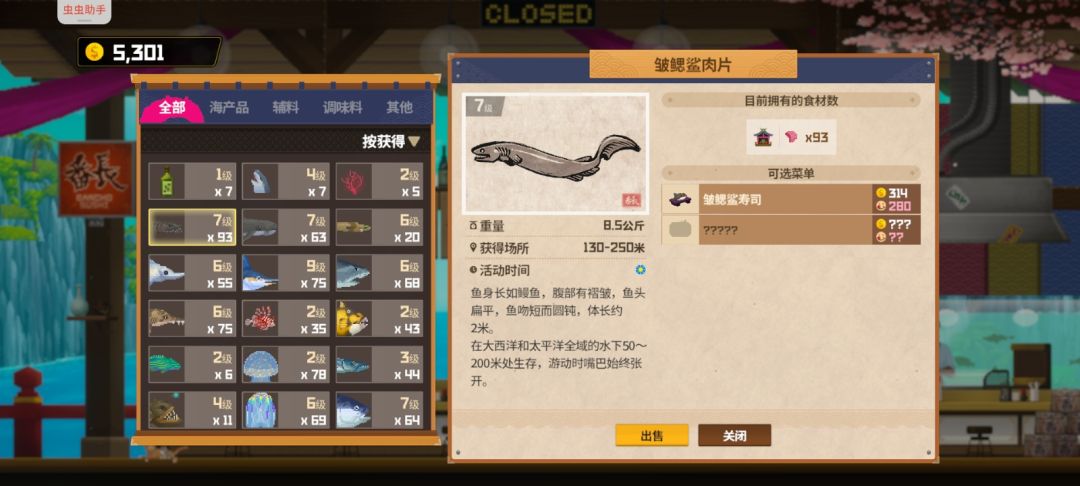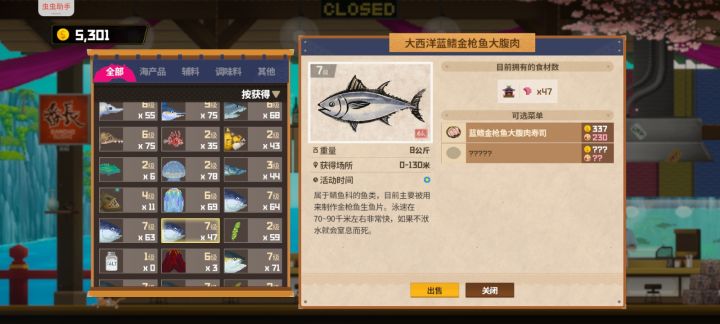 商店方面,有捕鱼网就买捕鱼网,一个拿去补平鳍旗鱼,另一个有金枪鱼捕金枪鱼,有旗鱼捕旗鱼,都没有拿去捕皱鳃鲨