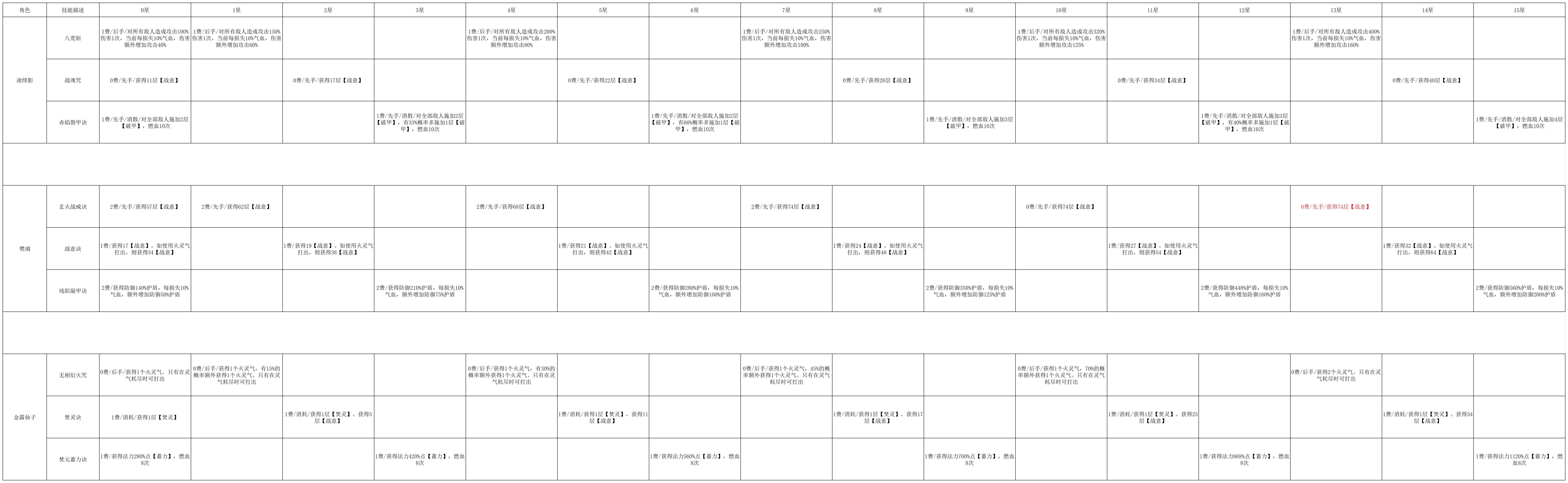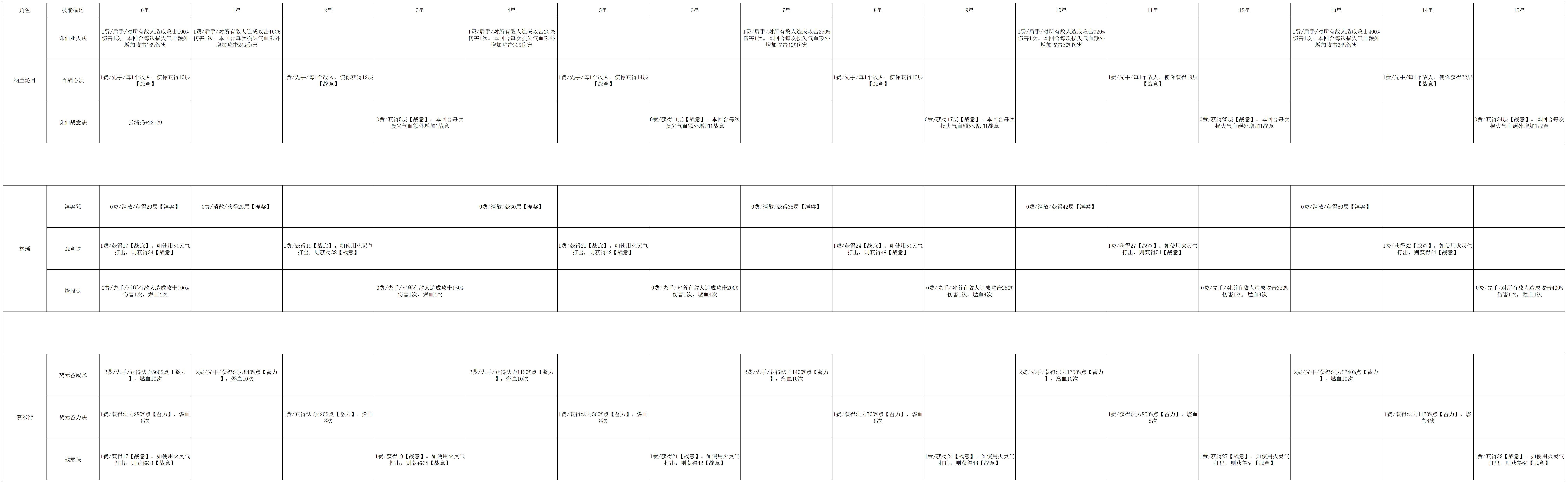 【百科全书】全角色技能升星一览