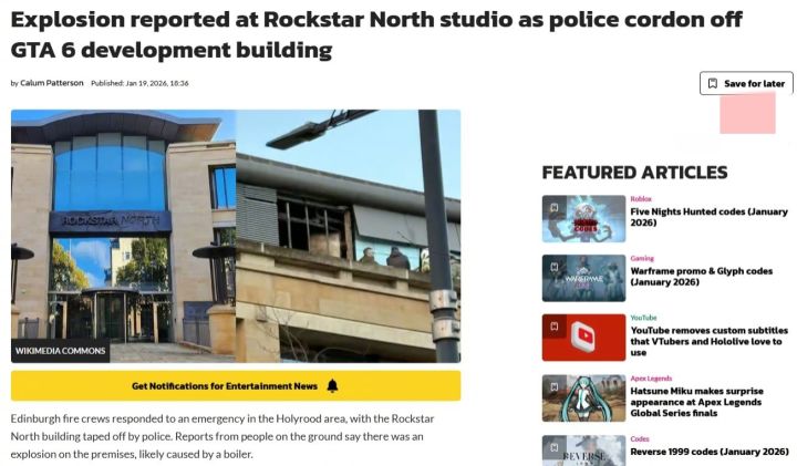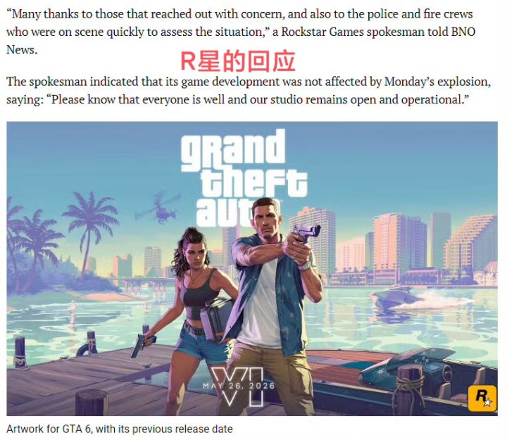 1月19号,外媒报道R星工作室锅炉房爆炸并引发火灾,官方回应不影响《给他爱6》开发
