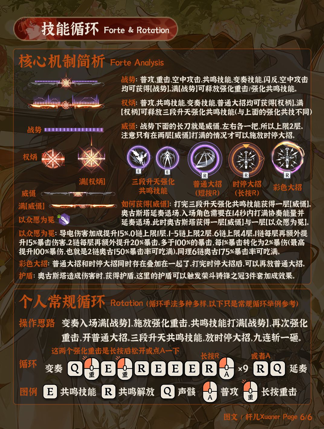 ⑥ 奥古斯塔有三种特殊能量、五种共鸣技能和三种共鸣解放。一些核心机制和基本操作思路可阅读第六页。
