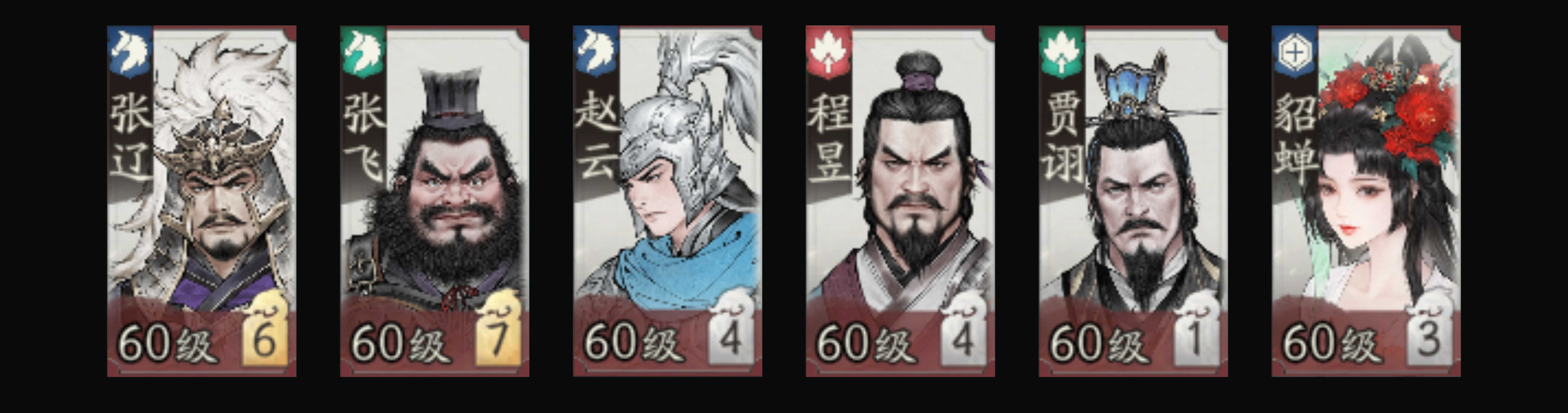 贾诩、张飞、陈登、程昱、荀彧、貂蝉