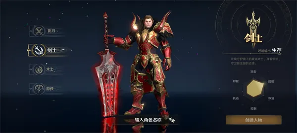 剑士近战输出,侧重生存是北境守护的最强武士,身着钢甲守边境,生存能力强,能在前排扛伤作战。