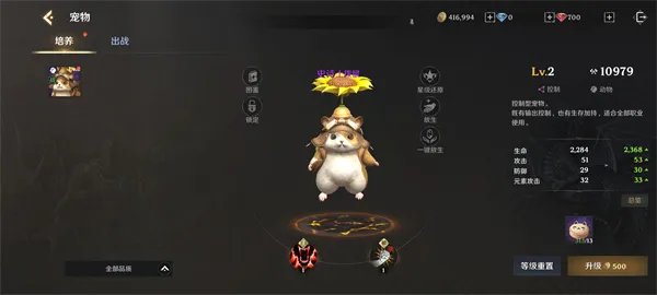 二、培育宠物通过培养宠物,升级等操作来提升宠物属性,进而助力提升角色战力