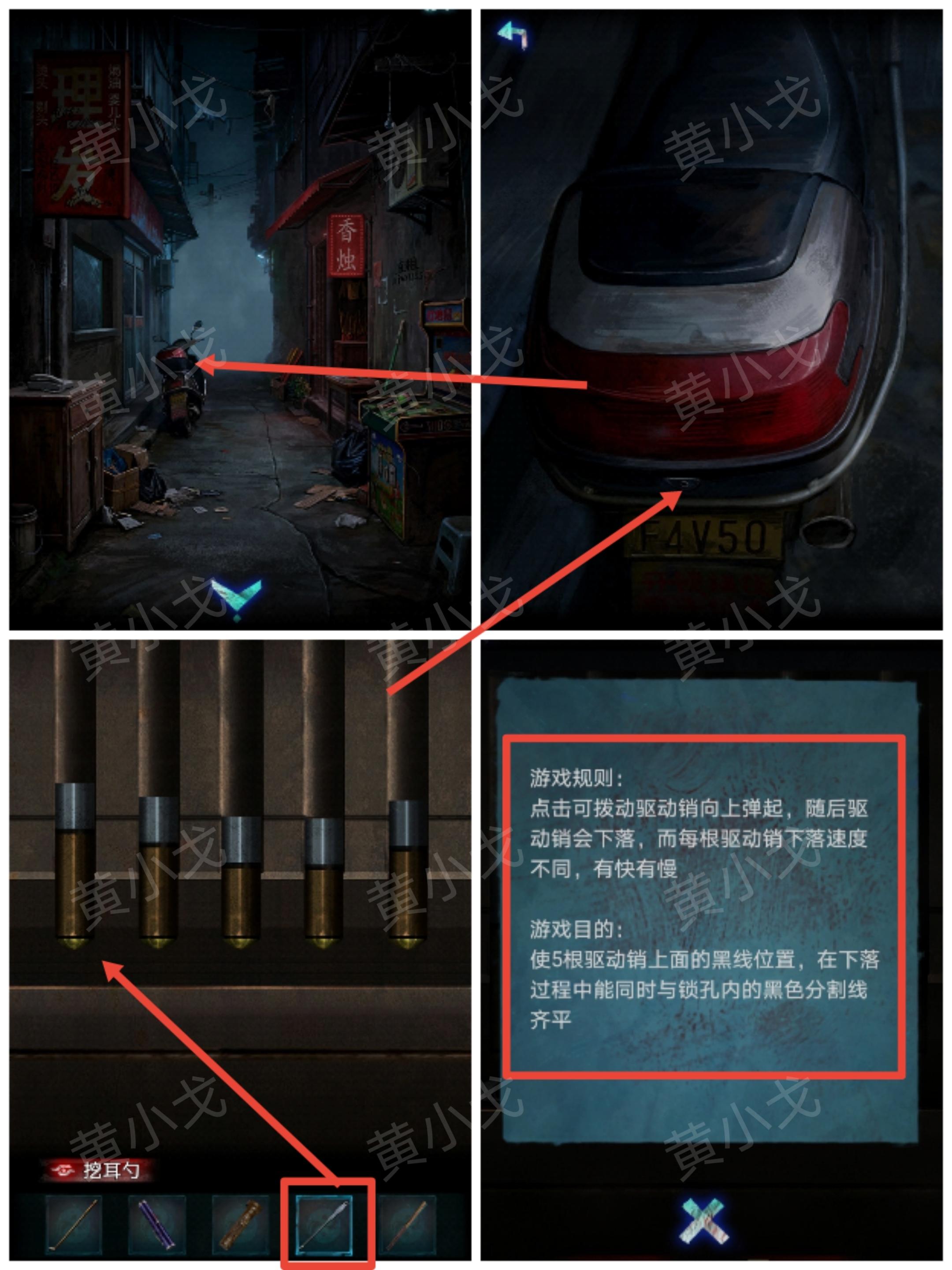 ②游戏目的:使5根驱动销上面的黑线位置,在下落过程中能同时与锁孔内的黑色分隔线齐平