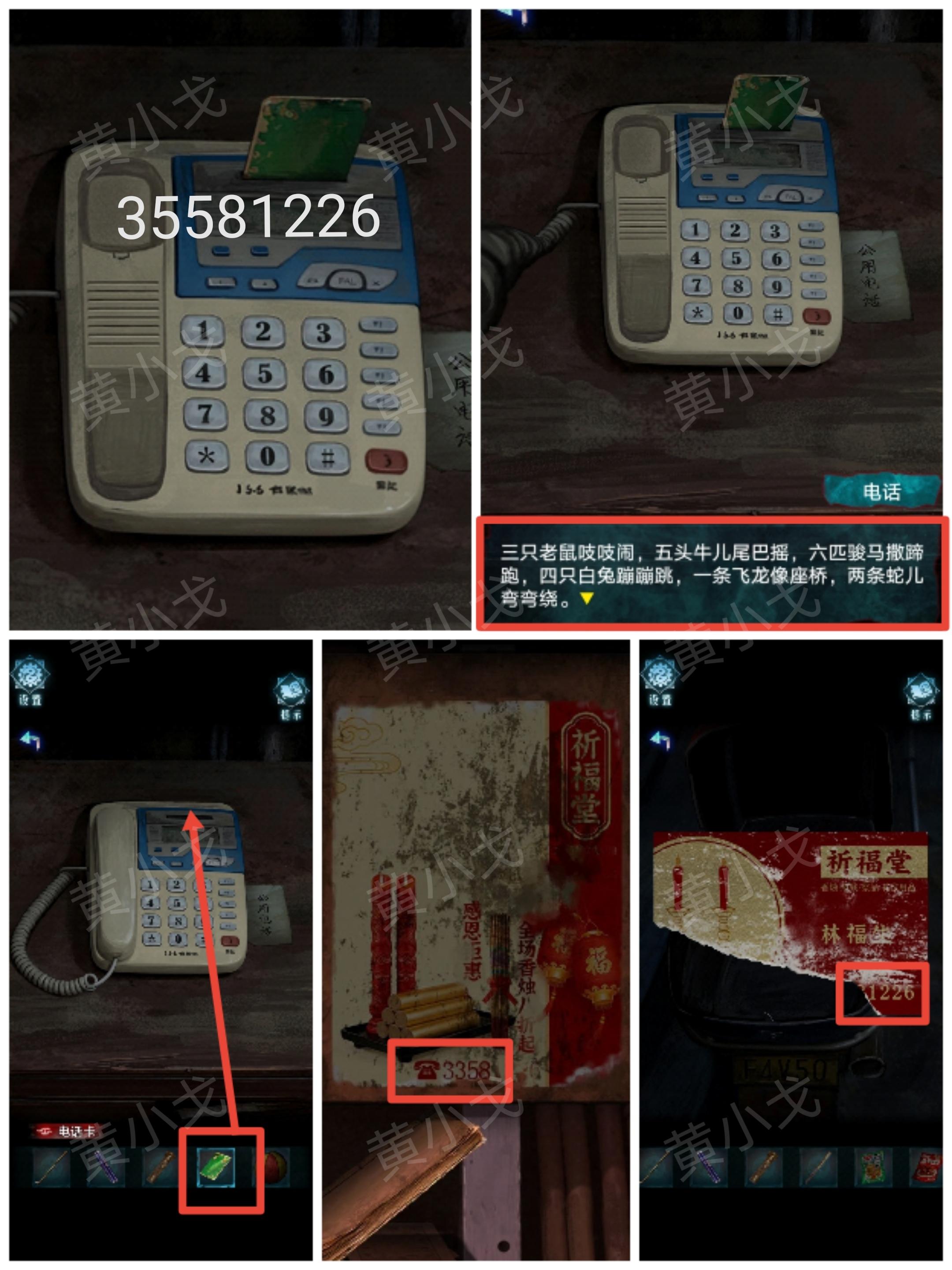 24.把【电话卡】插入电话机,根据电车后备箱里的传单和香烛店里的传单上的电话号码,拨打电话:33581226,获得线索