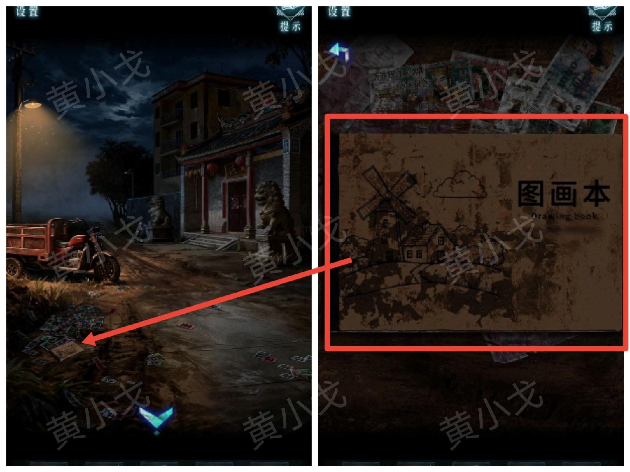 6.点击地上的图画本,翻开,使用【紫光小灯】,获得图案及高度线索