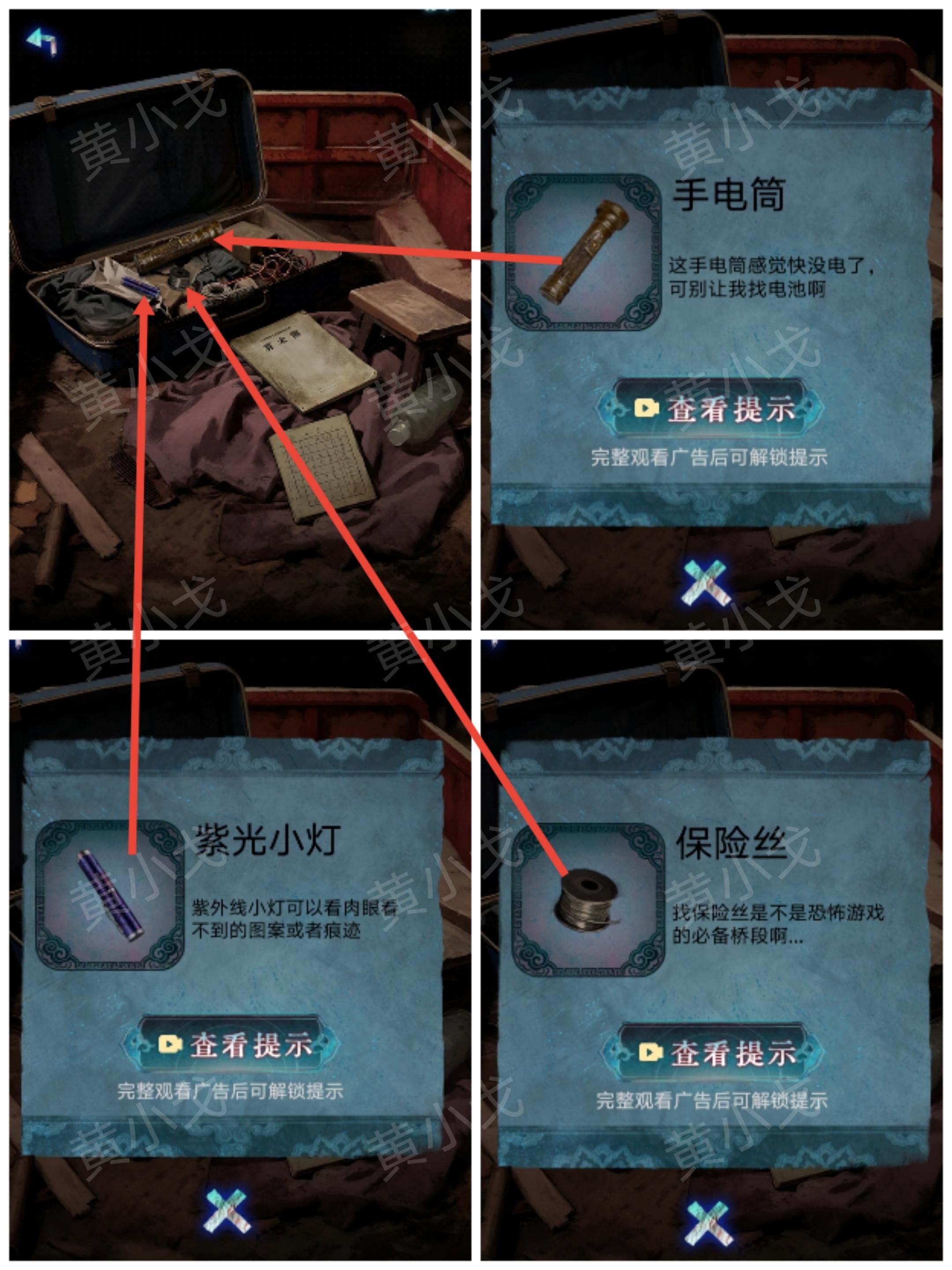 5.打开行李箱,获得【紫光小灯】、【手电筒】和【保险丝】