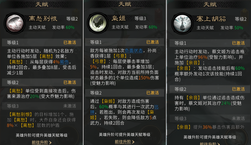 未来可期:等香香升到【炼彩】品阶后,天赋会更依赖负面状态。到时候可以组“纯负面队”,上周瑜、黄盖、庞统这些“上debuff”的好手,让香香的伤害彻底起飞!