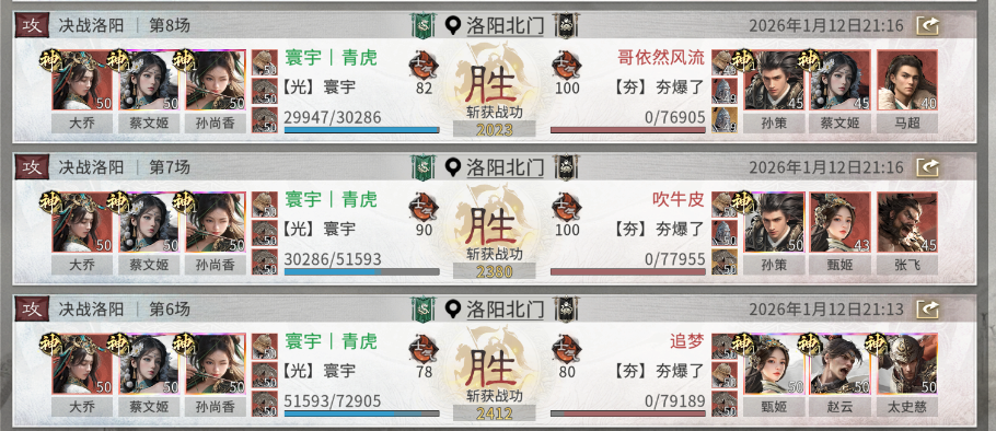 阵容推荐:孙尚香 + 大乔 + 蔡文姬