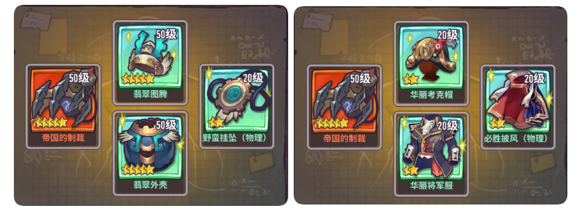 拿破仑、彼得专武+倍率套,拿破仑也可携带物攻套,奥古斯都帝国制裁+倍率套