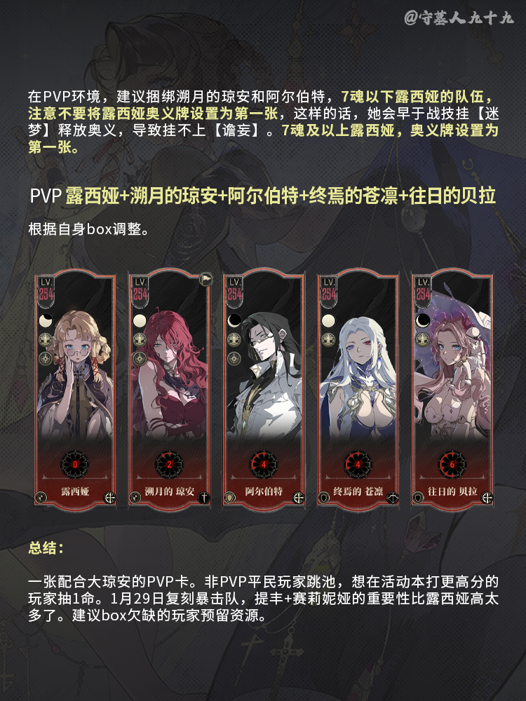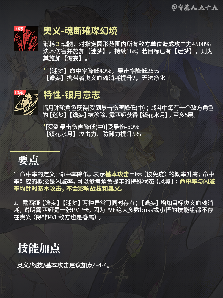 注意,终苍受命中率闪避率影响较大,但7命露西娅不能开局给终苍挂【迷梦】,因为终苍减血前摇。