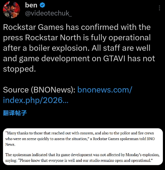 虚惊一场!R星工作室爆炸,官方回应《GTA6》开发不受影响