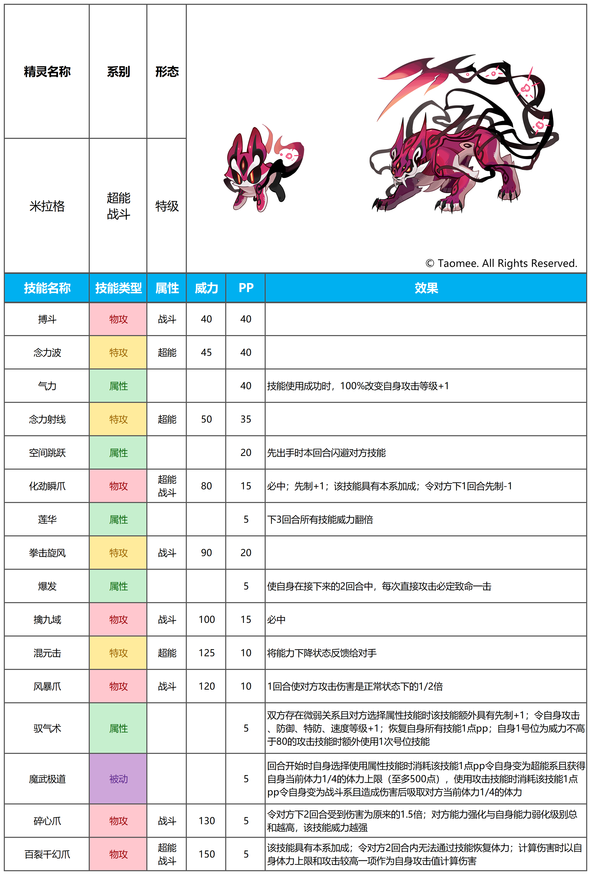 注:精灵的实际内容请以更新后游戏内为准!