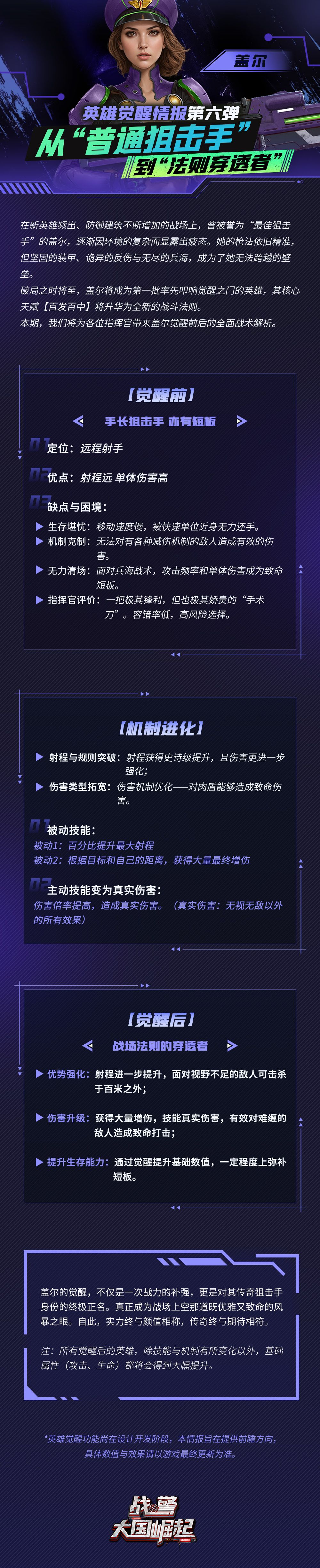 破局之时将至,盖尔将成为第一批率先叩响觉醒之门的英雄,其核心天赋【百发百中】将升华为全新的战斗法则。