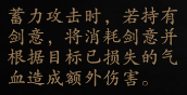 3、金色剑意,且敌人气血较少时,使用蓄力攻击消耗剑意。