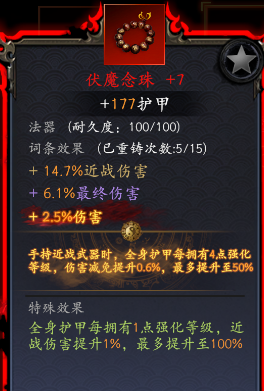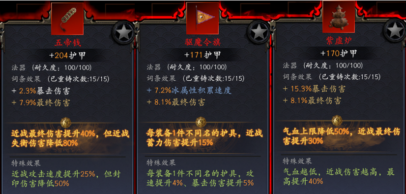 目前通行证中可以获得限定法器,其中五帝钱或紫虚炉可以在装备强化较高后替换为伏魔念珠。