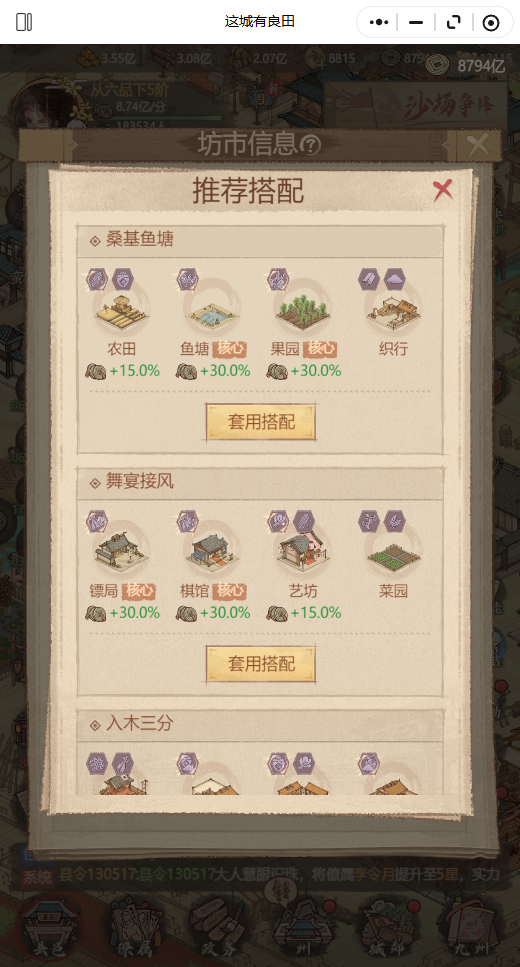 很多微氪玩家甚至氪佬在一顿氪金之后,发现自己的税收还是比不过别人,大概率就是输在坊市任命的非主战力僚属身上了。我们平时官匠营出产的材料要一直不停的做装备,主战英雄满装后多出来的装备优先给坊市任命的僚属套上,你会发现你的税收骤然上升一大截。
