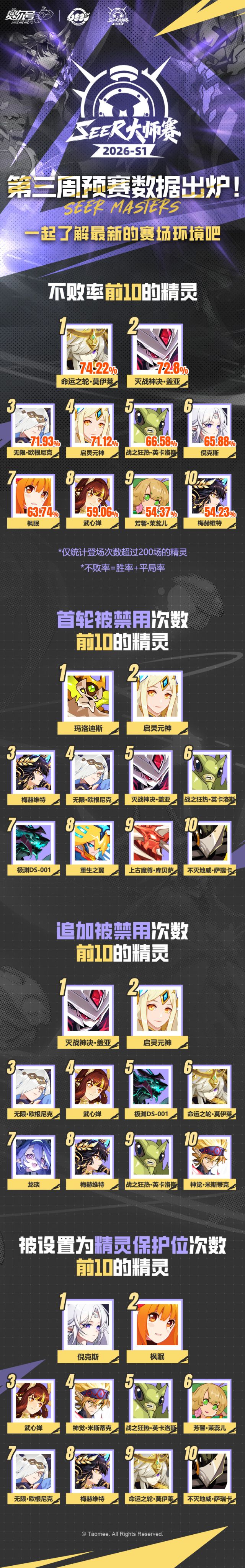 《赛尔号巅峰之战》一起看看第三周预赛选手们的精灵使用数据~