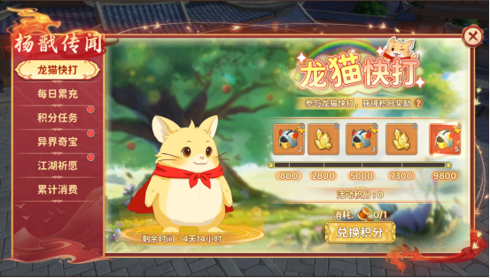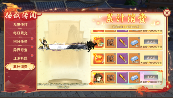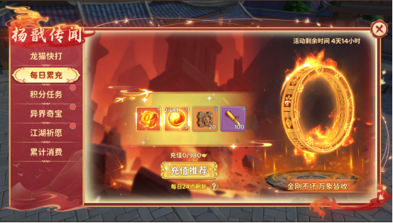 活动期间每日充值元宝达指定额度即可获得异界奇宝材料,机会难得,快来参与吧!