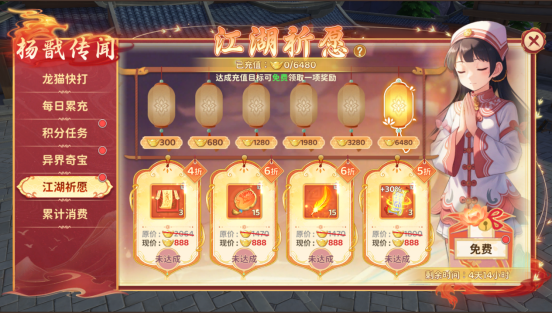 六档奖励尊享专属折扣,达成目标即可自由选好礼,更有额外免费奖励等你领取。祈愿回馈丰厚,让每一份投入都物超所值。