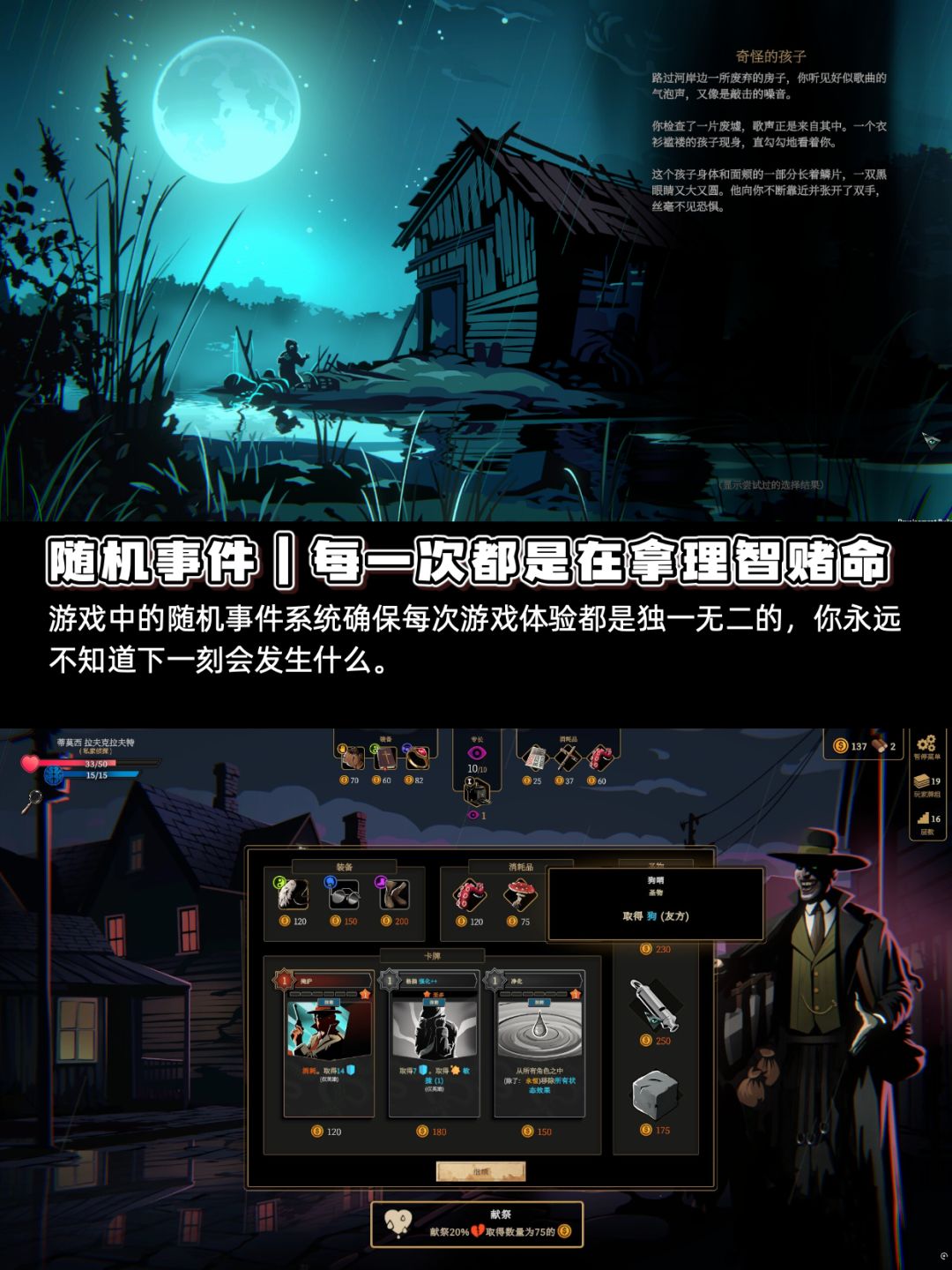 这不是传统的线性解谜恐怖,而是卡牌构筑+肉鸽策略的混合体。