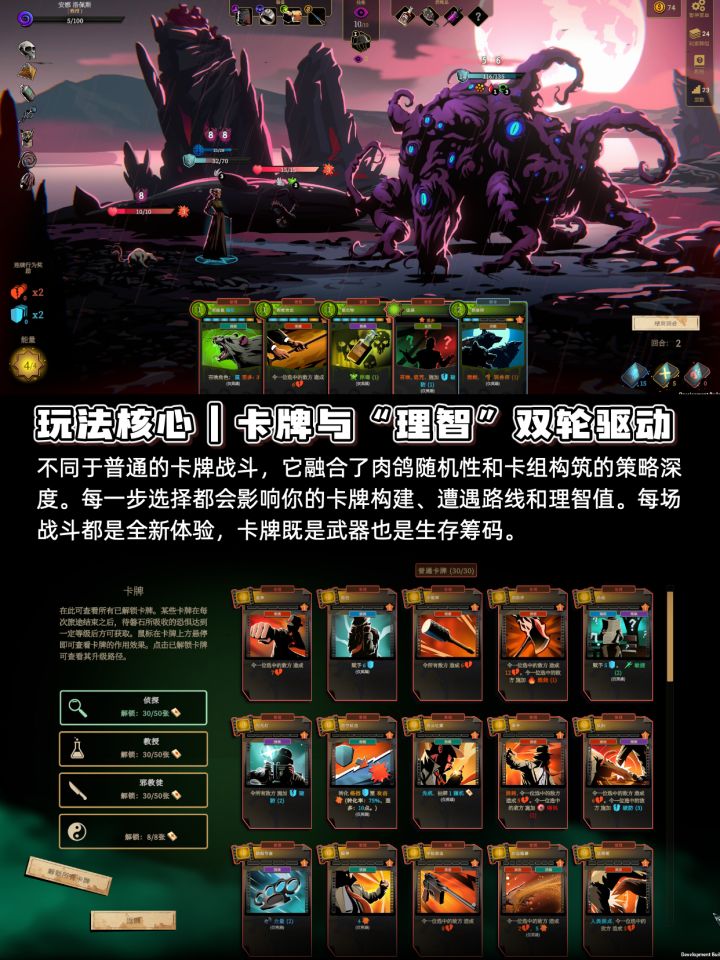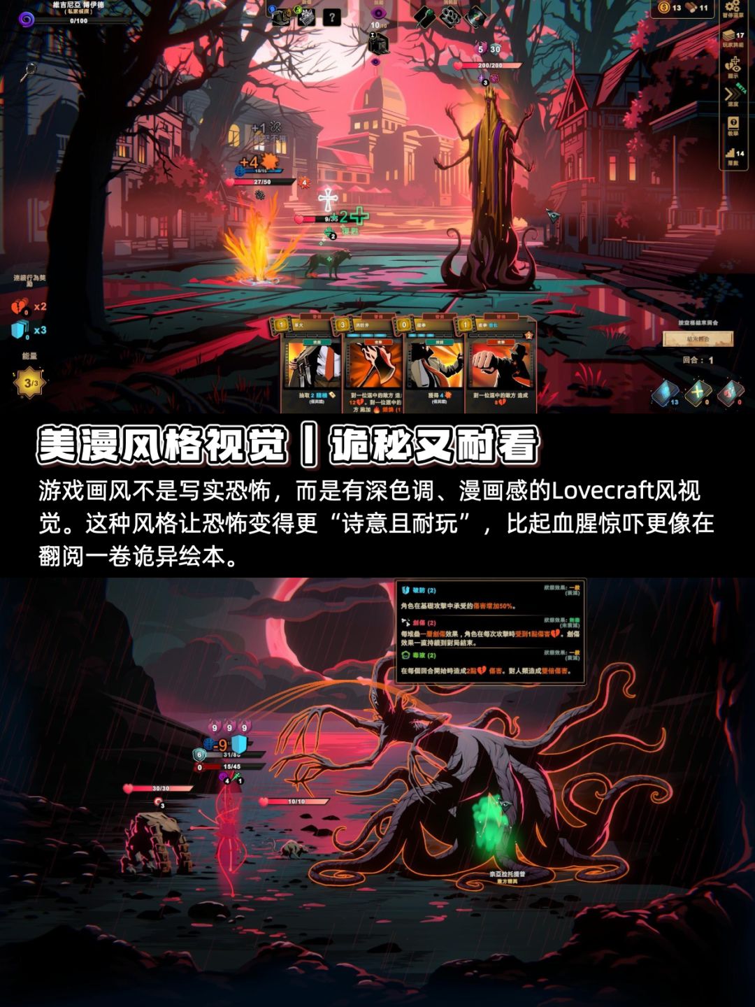 📍 克苏鲁背景配合卡牌策略玩法,给人一种越玩越不安的“理智危机”体验。