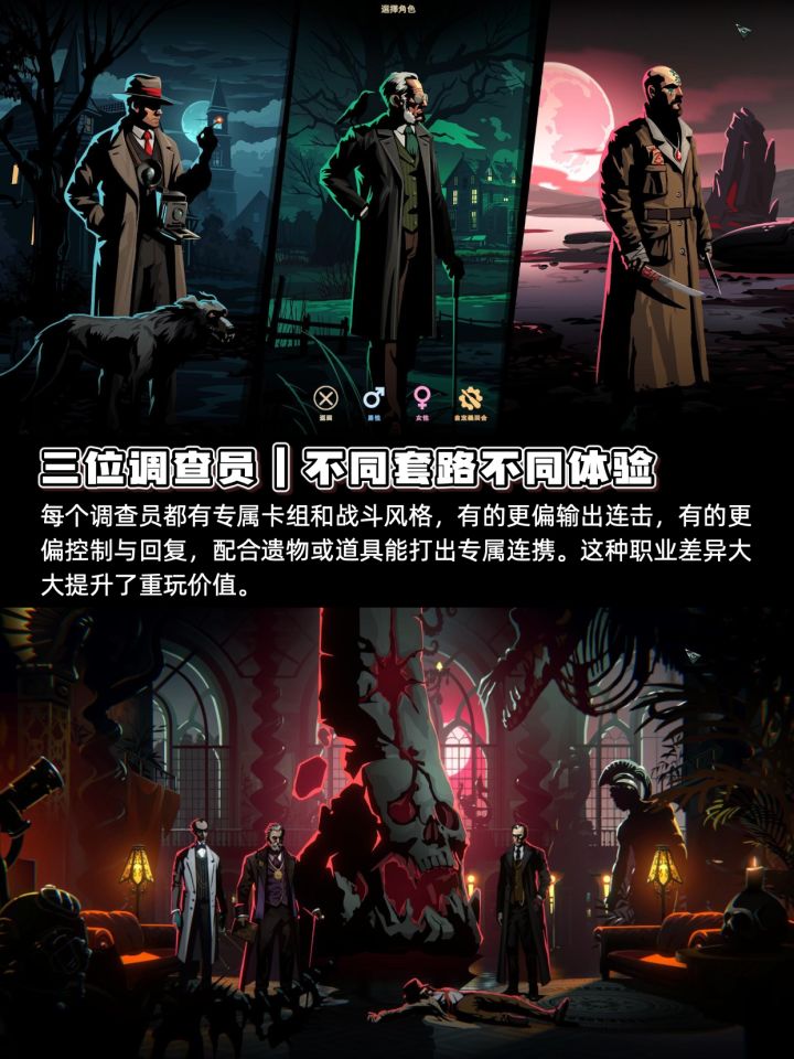 🎴 职业特色卡组搭配:每个调查员自带不同的套牌和技能,不同组合战术感完全不同。
