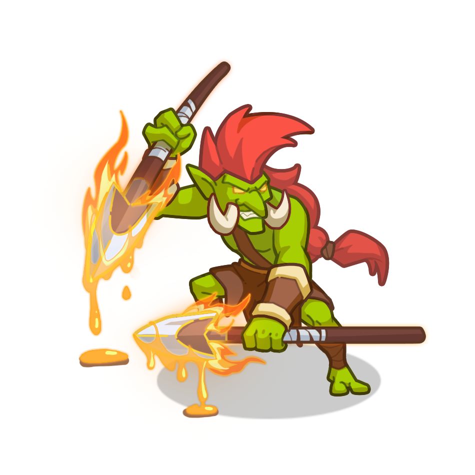 巨魔武士用自己的鲜血让矛燃烧,普攻使敌人每秒受到巨魔武士攻击力60%的物理伤害,持续3秒。
