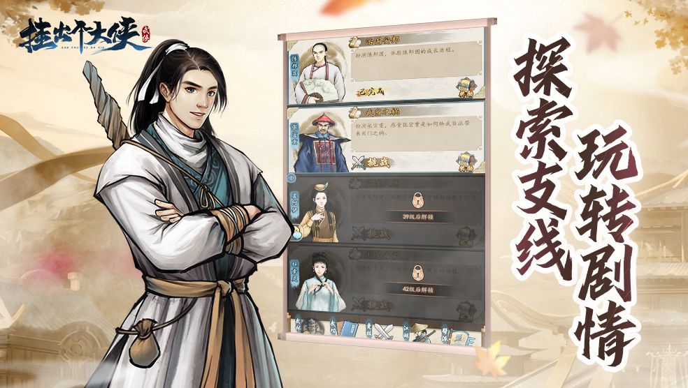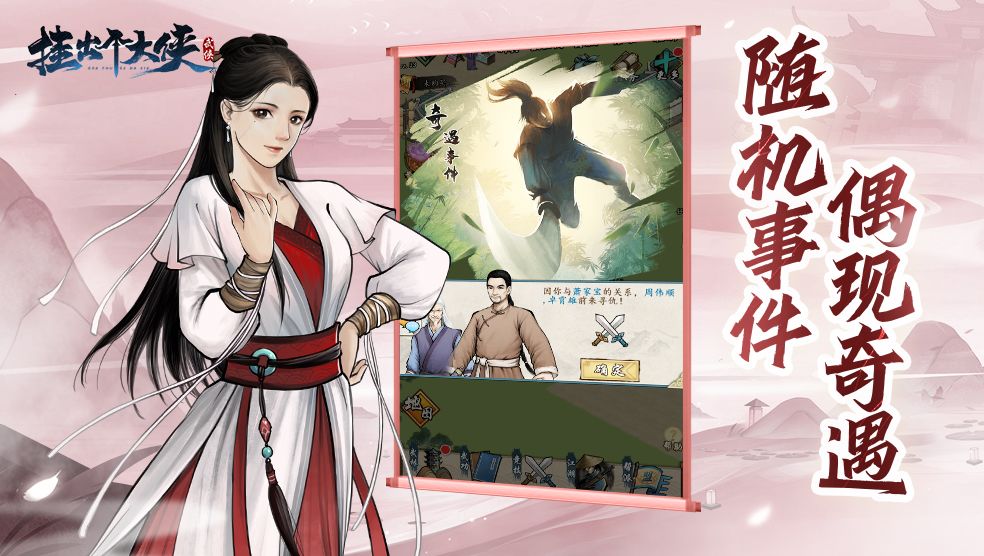 江湖游历除了切磋比武,浓郁的社交氛围也可以增添许多乐趣。在《挂出个大侠》中,每个“江湖中人”都可以拜师或结交,如果能再遇上三两可以交流心事的好友,不失为人生一大快事!不仅如此,游戏还有趣味的奇遇玩法,只要保持在任意地图停留、活动,都有概率触发随机事件哦。