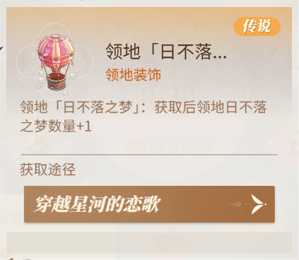 达到1500次获取传说领地装饰日不落之梦