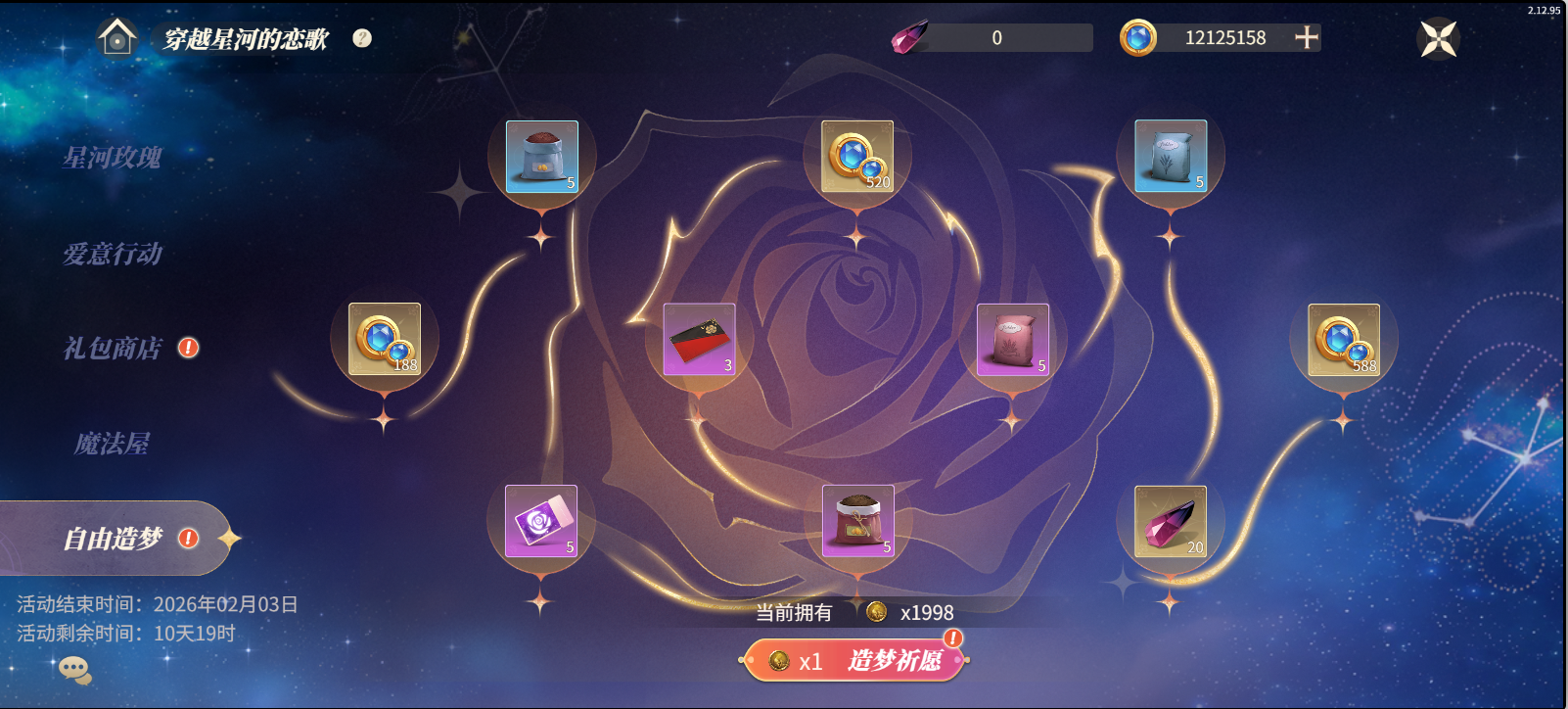 使用祈愿币,在自由造梦中抽取各种豪华奖励。