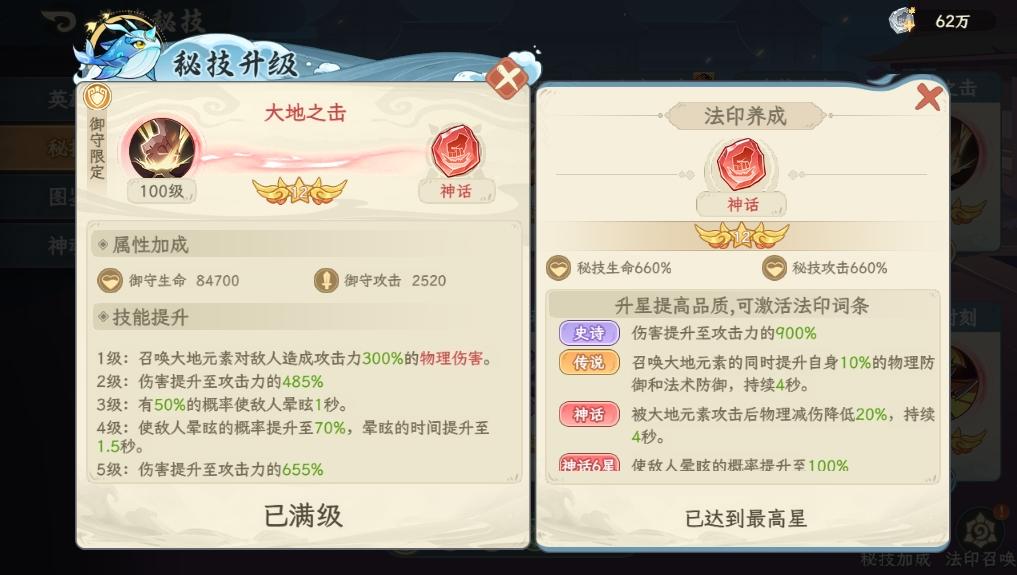 2、秘技1–5级每升1级提升1次技能等级;秘技达到5级后,后续升级(6–100级)不再强化原有技能效果,仅提供属性加成。