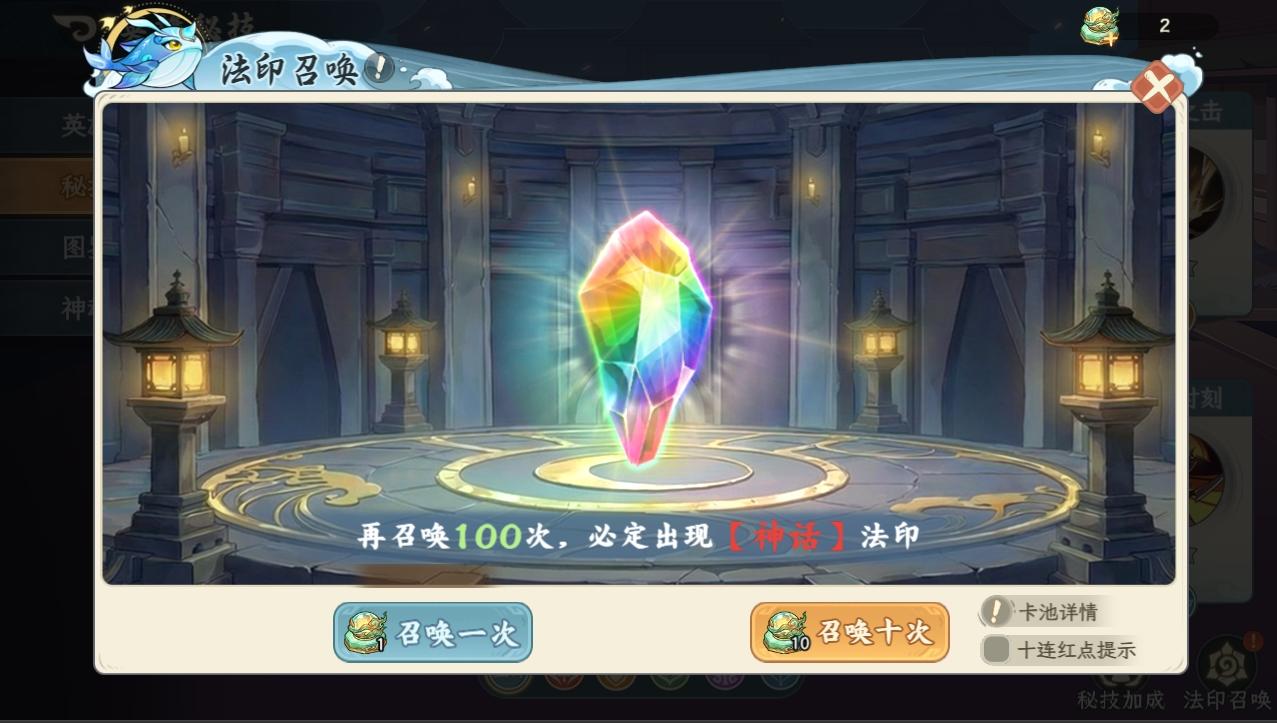使用召唤道具可在法印召唤中进行召唤,召唤可获得秘法专用法印。