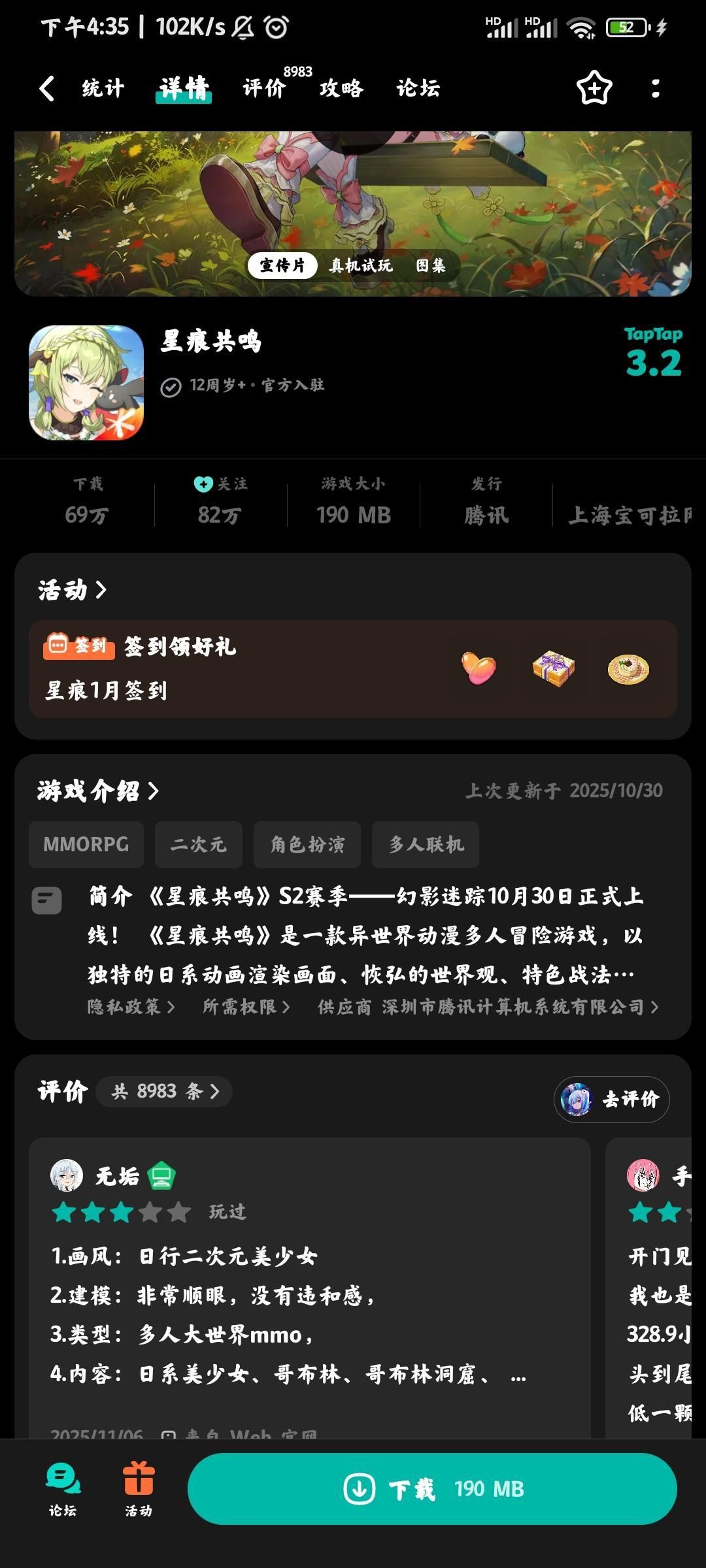 今天找游戏发现了星痕共鸣,二游+mmo,比较少见的组合。但一看是腾讯系的游戏就有些顾虑。腾讯的游戏我记得小时候玩过cf的手游,但那时也是存钻石,抽无影雷神毁灭。