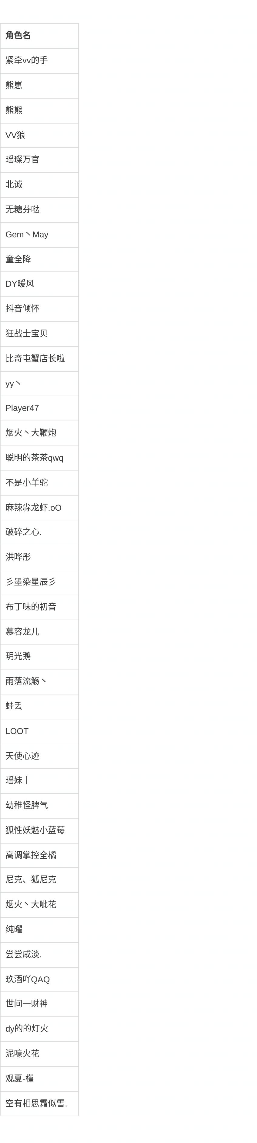 以下为近期因违规处罚情节较重的玩家公示名单,相关角色已进行复核,违规属实。如有任何疑问,请通过游戏内客服进行反馈。