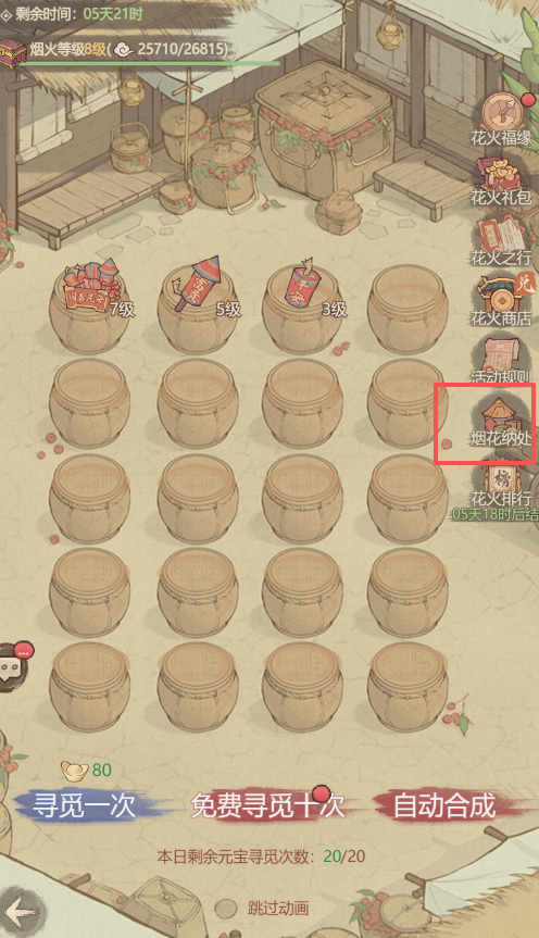 在做日常任务之后,要注意合成的格子中的材料是否已经溢出。合成的盒子一共20格,多出的材料在烟花纳处存放,将所有材料合成之后,再进行寻觅