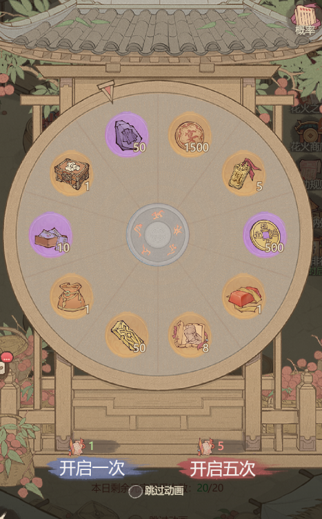 合成同等级材料获得更高一级的材料,获得花宴宝钱和烟火气以及花火通票