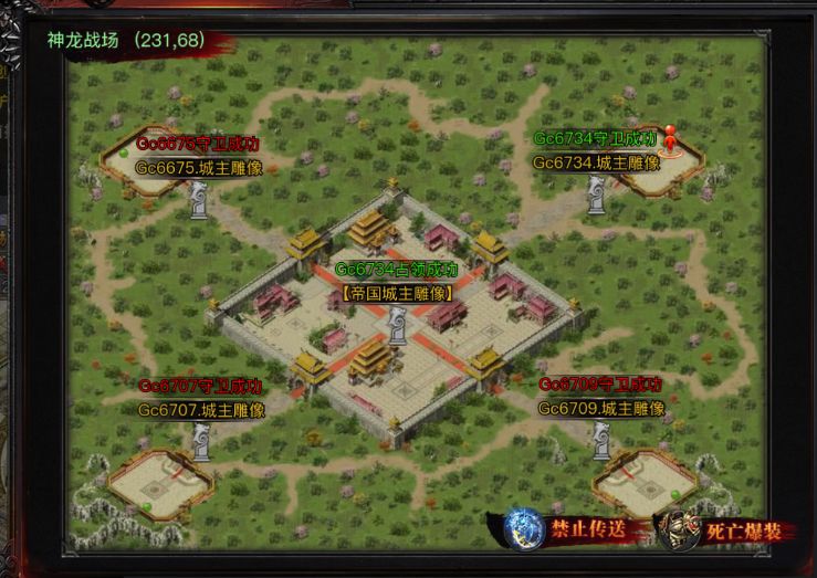 战场布局:神龙战场内设 5座雕像——中央帝国雕像 + 东/南/西/北四方位