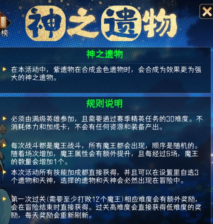 【S12赛季-光暗交织,爆料贴之三】活动-神之遗物