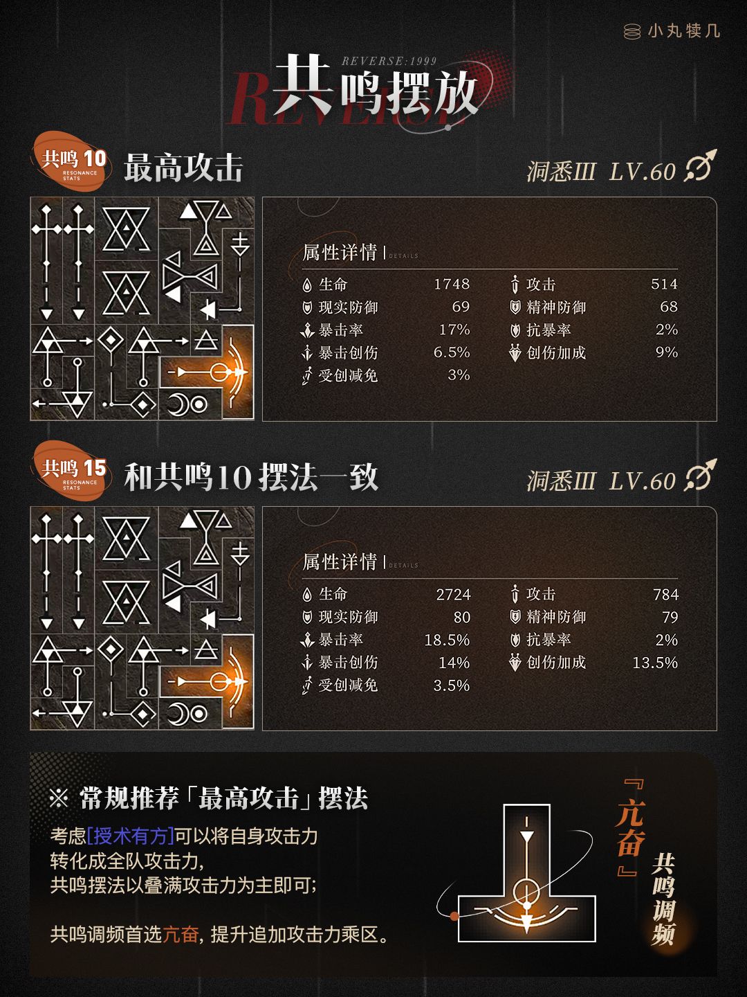 ※共鸣10&15通用『最高攻击』摆法: