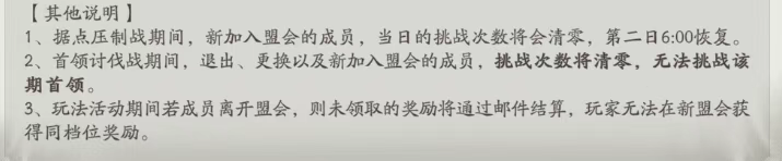 在之前两次盟会首领战中,有不少明公反馈只有周六一天挑战时间过于紧张,会让周六有事的明公们错过一个版本中最重要的首领战,也有不少明公反馈需要熬夜蹲守榜单防止被其他盟会偷榜,这些都不是我们的初衷。