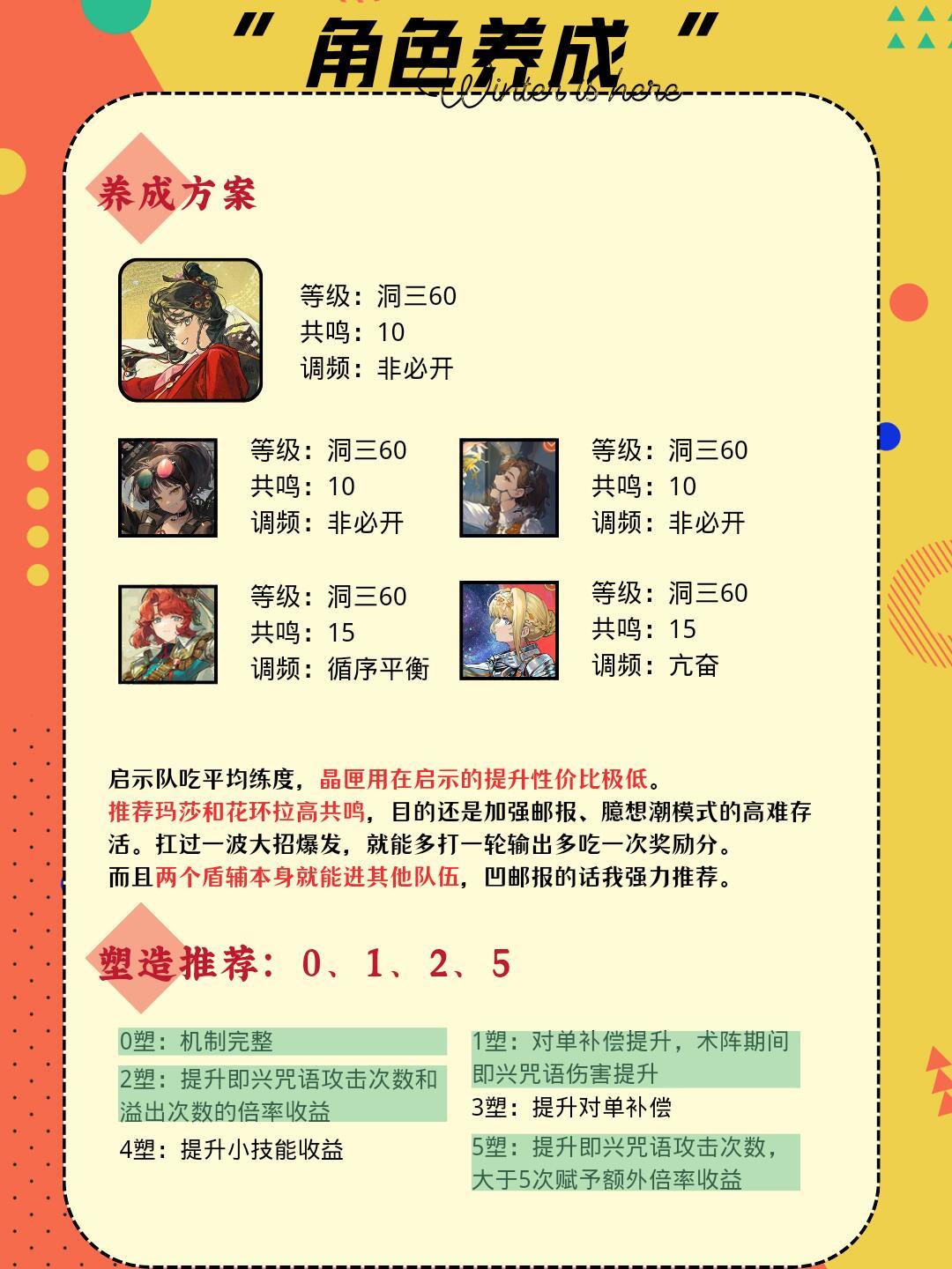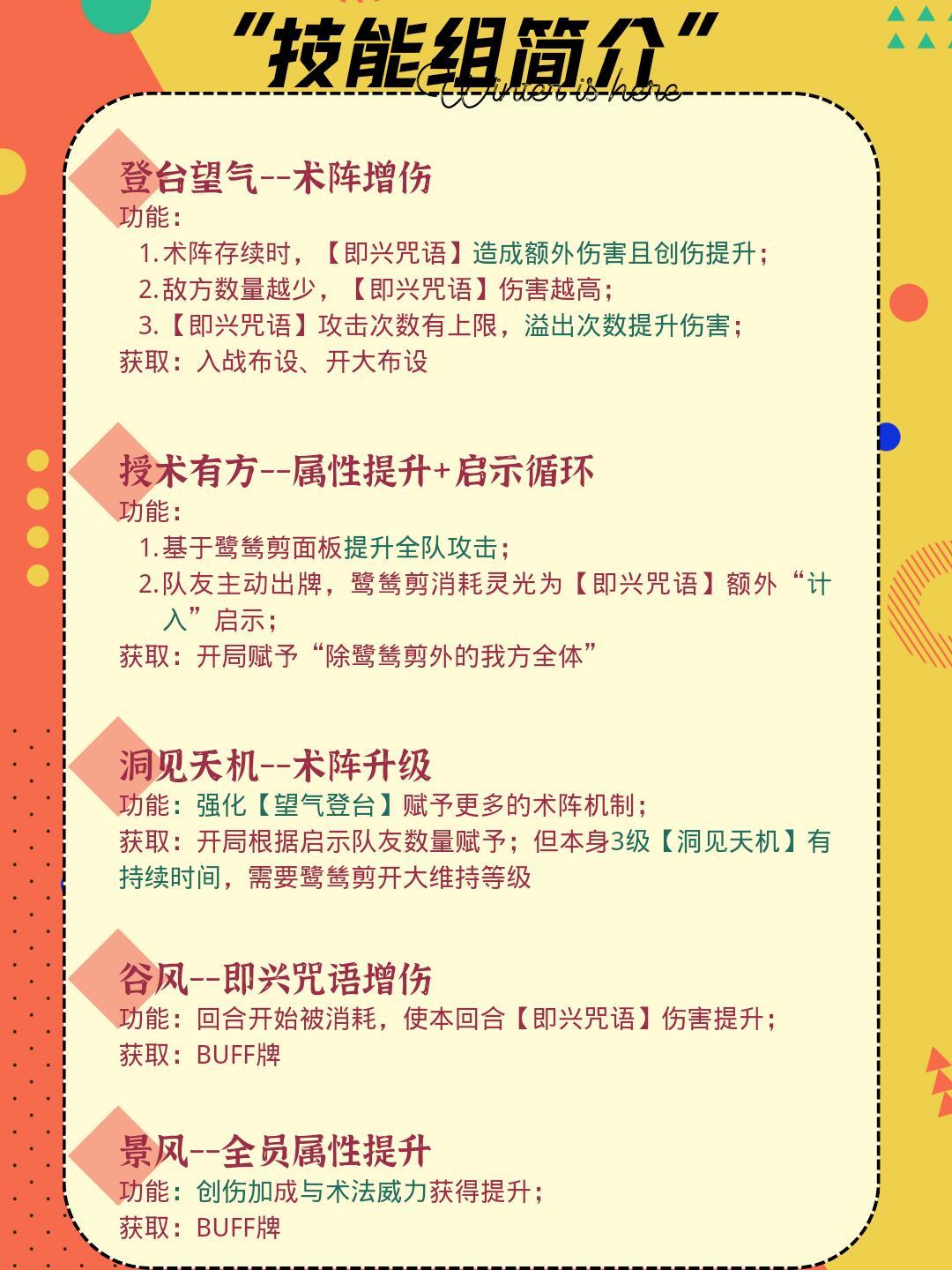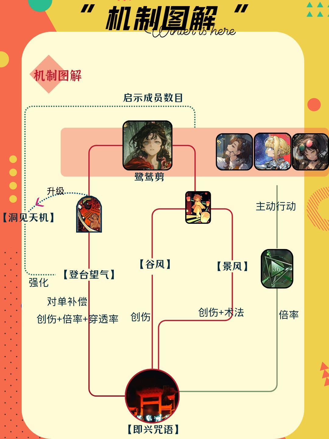 鹭鸶剪的综合水准以及循环方式都没问题,小技能一阶buff卡就能有全队20%术法和20%创伤提升,一阶小技能对即兴咒语的增伤也有40%。