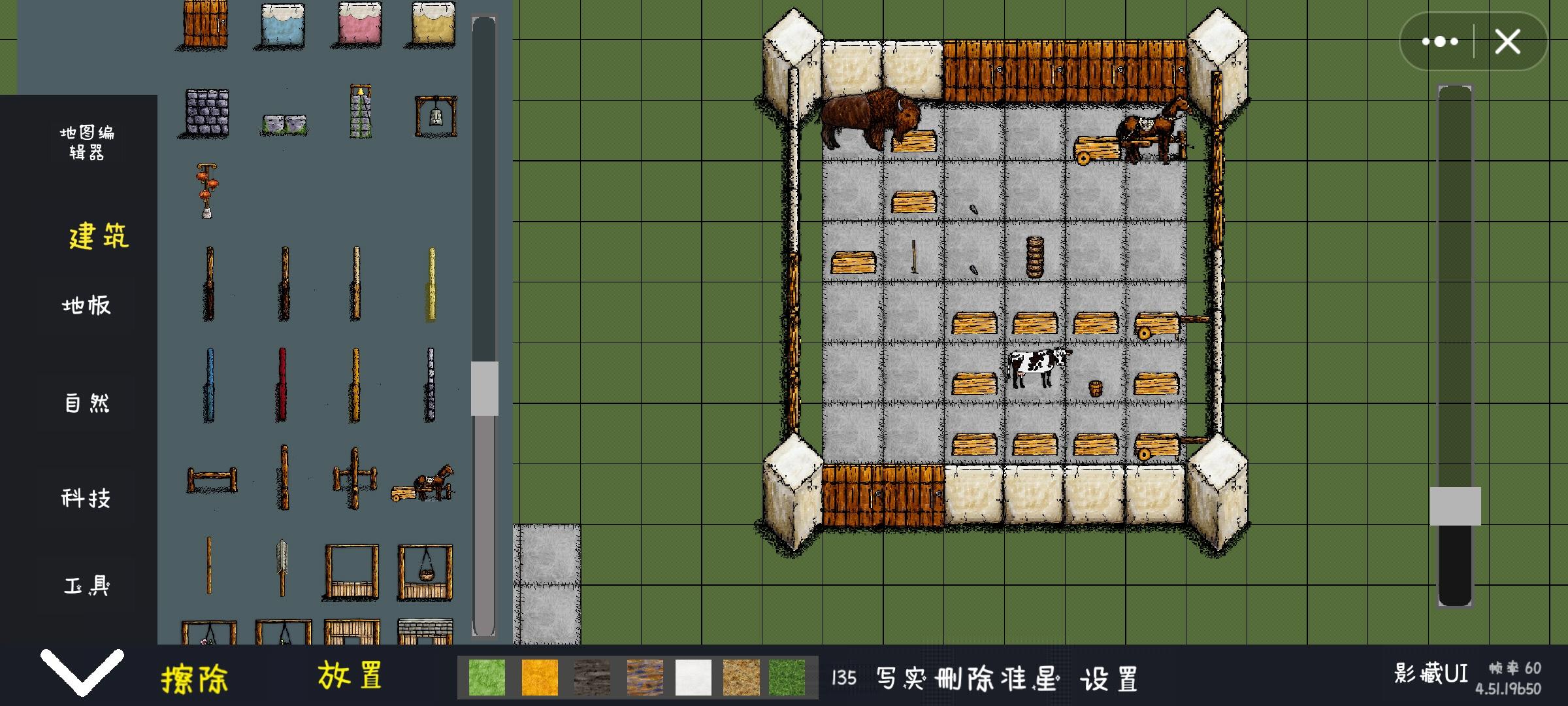 然后p2是牛圈功能图,小推车是不阻拦移动的带棍箱子,其他是普通箱子,可以选一个箱子换成蓄水池。玉米剥好皮带过来放这些箱子里。野牛放左上角方便取颜料之后补牛。右上角空地停马车和卸货干活。