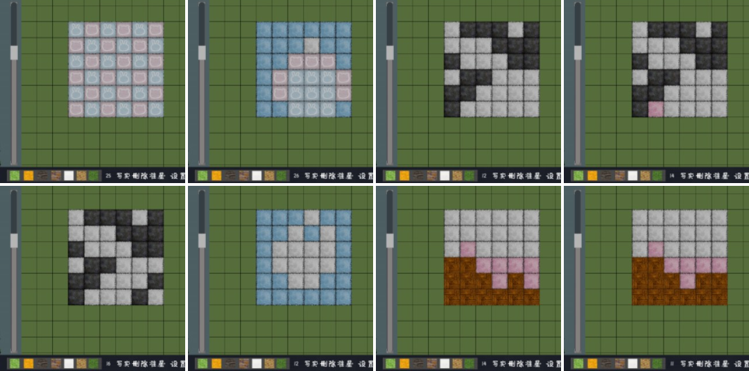主要是p3帮我选一下哪个比较适合p2小牛圈,1是普通的两种幼儿园地板排列组合,2是奶瓶,345是奶牛局部,6是一滴奶,7和8是牛奶奶(什么鬼)