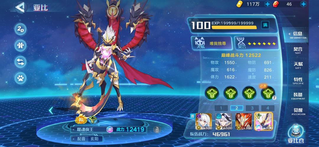 伤害指数:⭐⭐⭐⭐⭐(固伤能力强,本身输出能力也不弱,提升属性速度较快而且超进化拥有属性专家等技能书优势就算超进化结束后也不会疲软。)