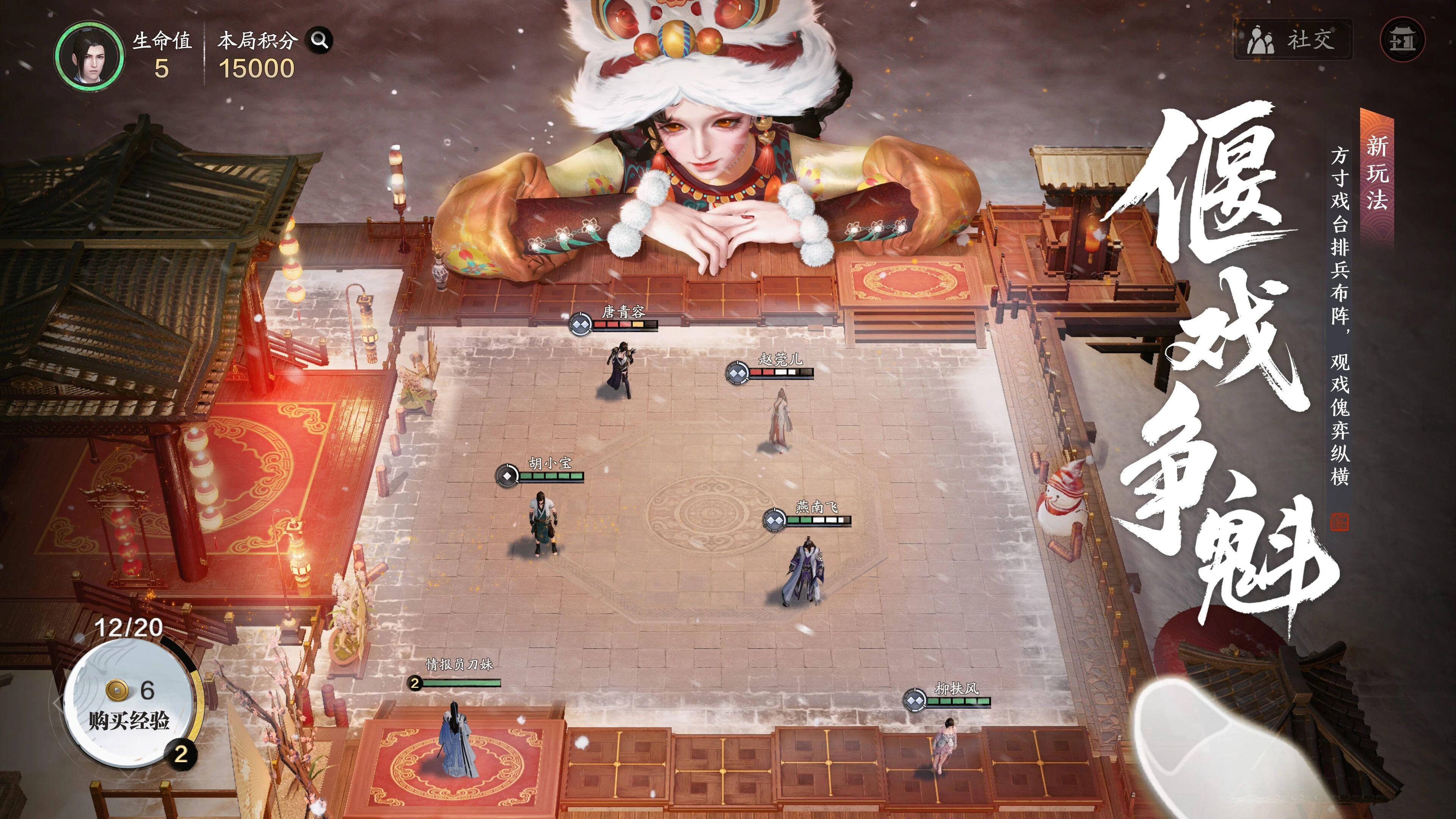 这次少侠无需亲自上场作战,只需端坐棋盘前,指点江山,PVE对战江湖高手。宋廷、天峰盟、青龙会等各大势力群侠,皆化身为你手中戏傀,任你排兵布阵、组合势力与特性。