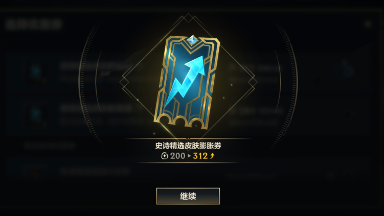 针对史诗精选皮肤膨胀券,每膨胀2次必定获得一个面值在最大面值范围内的膨胀券。