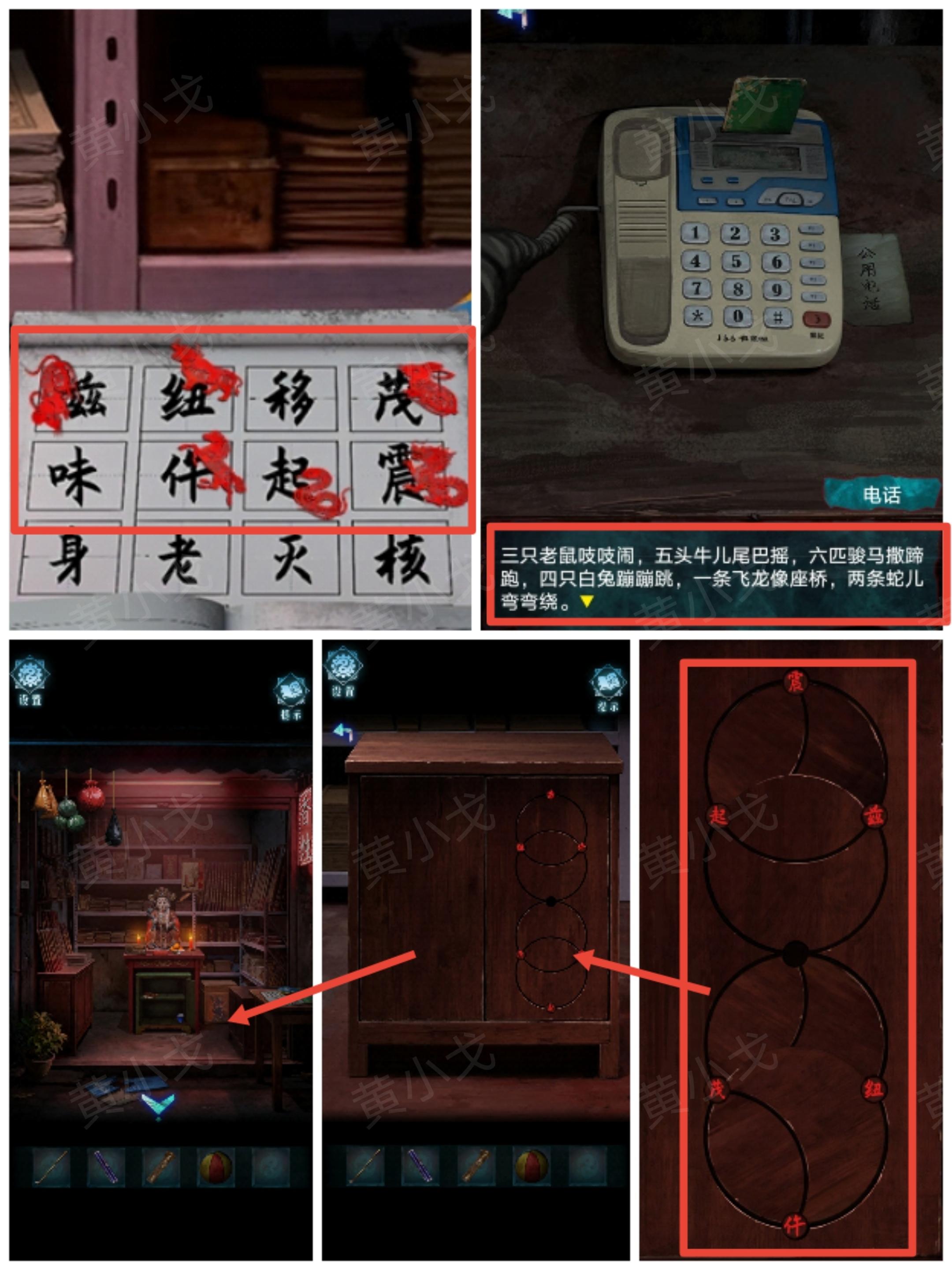 8.点击柜子上的密码锁,根据凹槽下方的数字,结合书上的动物剪纸和电话语音线索,调整对应字滑块的位置(有小高能?)